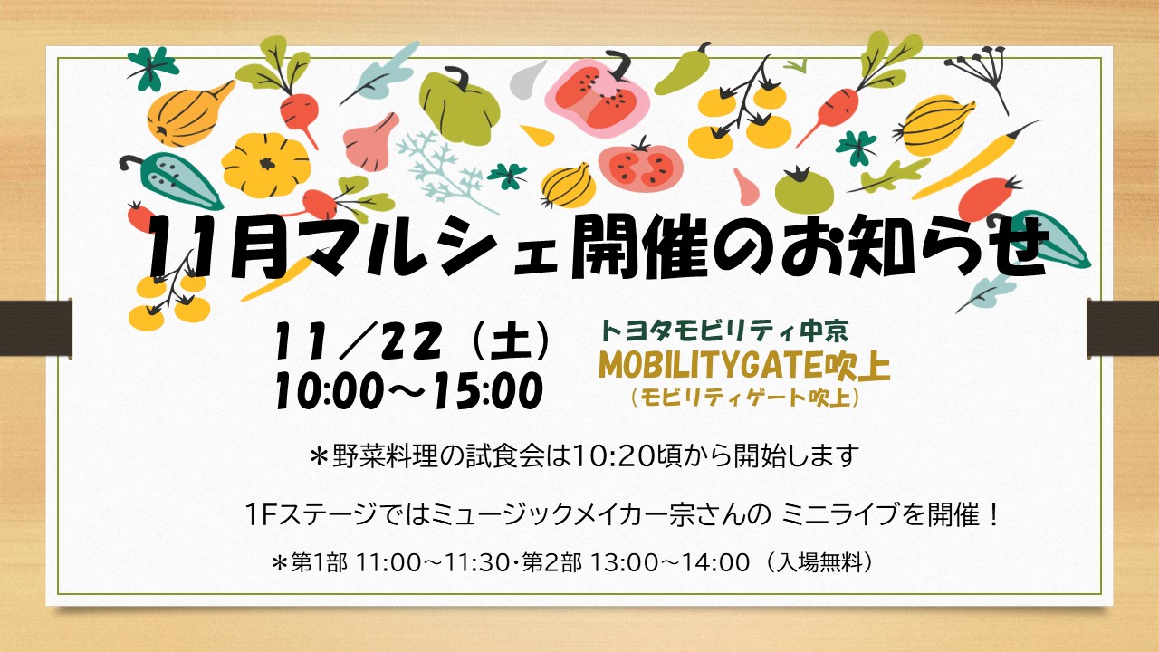 11月22日(土)は毎月恒例のMGFマルシェ開催日です。